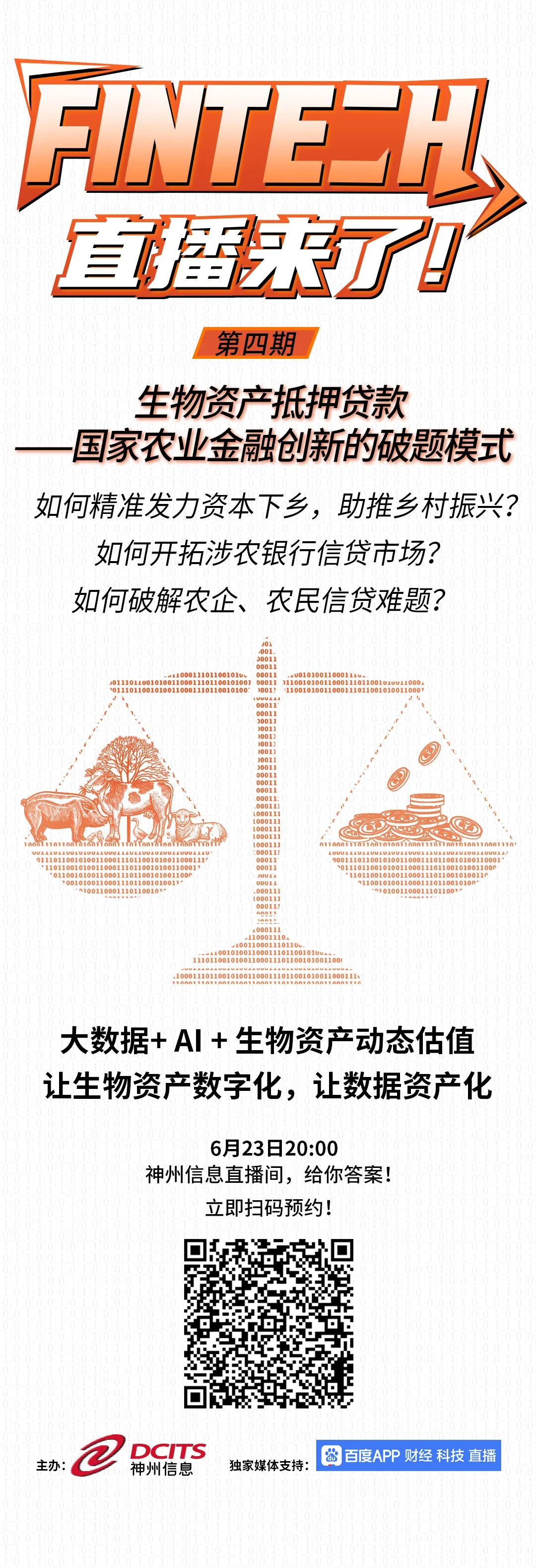 小编说:如果您对“生物资产抵押贷款”感兴趣,如果您来自银行、保险、证券、基金、信托、财务公司等金融机构,请及时扫描下方二维码进行报名预约,6月23日20:00不见不散!