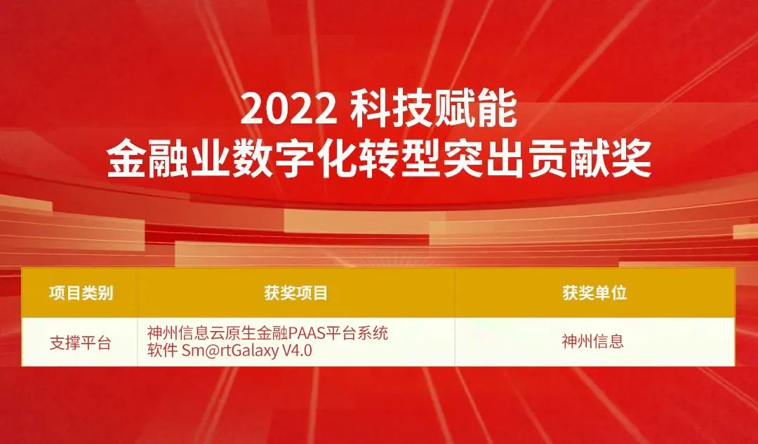 BB贝博艾弗森官网Sm@rtGalaxy4.0云原生金融PAAS平台获评“2022科技赋能金融业数字化转型突出贡献奖”。
