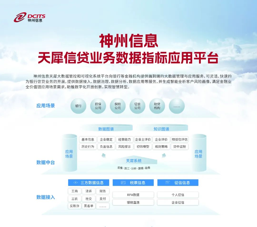 天犀信贷业务数据指标应用平台,可解决金融机构在大数据应用方面面临大数据处理能力相对薄弱、技术人员储备不充足、数据管理体系不够全面完善、数据缺少融合应用分析及现有数据架构无法满足不断迭代的应用场景需求等四大痛点,快速地为银行信贷业务开展提供多项数据服务并生成智能全析客户风险画像,满足金融业全价值链应用场景需求。与金融机构的合作实践中,“天犀”更可以减少重复建设,节约时间及人力成本,挖掘数据资产价值,助力高效智能决策和金融业持续创新。