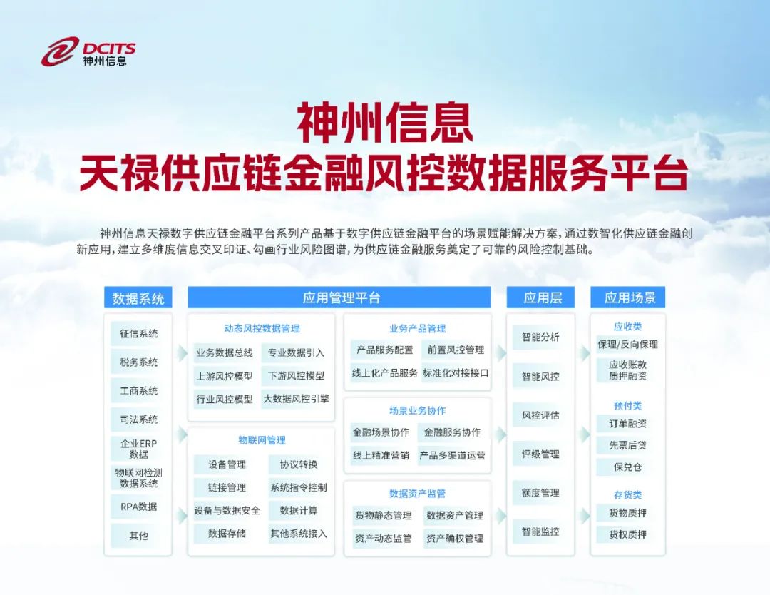 天禄供应链金融风控数据服务平台,基于数字供应链金融平台的场景赋能解决方案,为供应链金融服务奠定了可靠的风险控制基础。在供应链金融风控逻辑上,构建了上游供应商扩围风险评估体系和下游经销商扩围风险评估体系;同时通过融合互联网、大数据、物联网等先进技术,应用金融科技手段提升供应链金融服务实体经济的效率,从而破解中小微企业融资难、融资贵的问题,推动中小微企业融资业务的扩面增效。