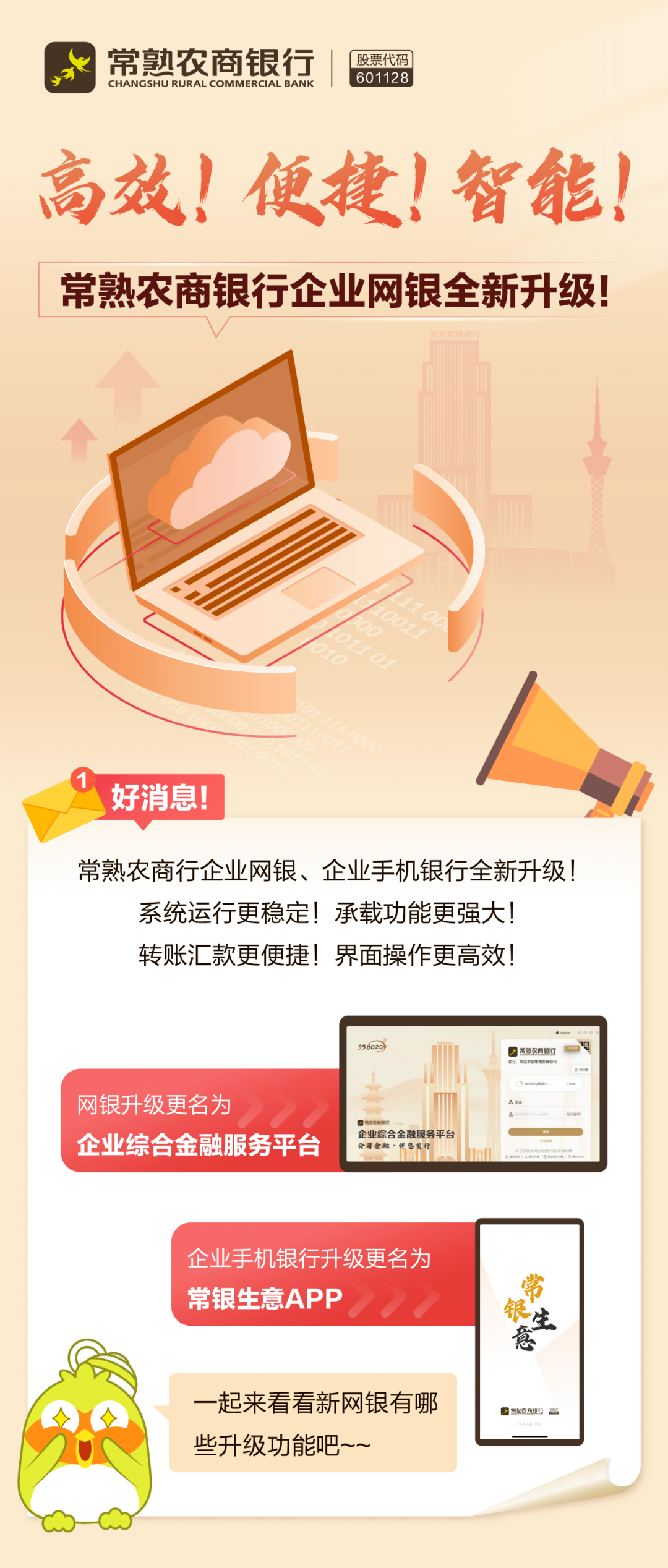 常熟农村商业银行自成立以来始终坚持以客户需求为导向,不断创新业务品种、持续提升服务质量。通过引进先进的技术平台和安全认证体系,常熟农村银行打造构架更为安全、便捷、优化的企业网银平台,以满足日益增长的客户需求并提供更加充分的安全保障。承载银行金融服务,打造“以客户为中心”的服务。