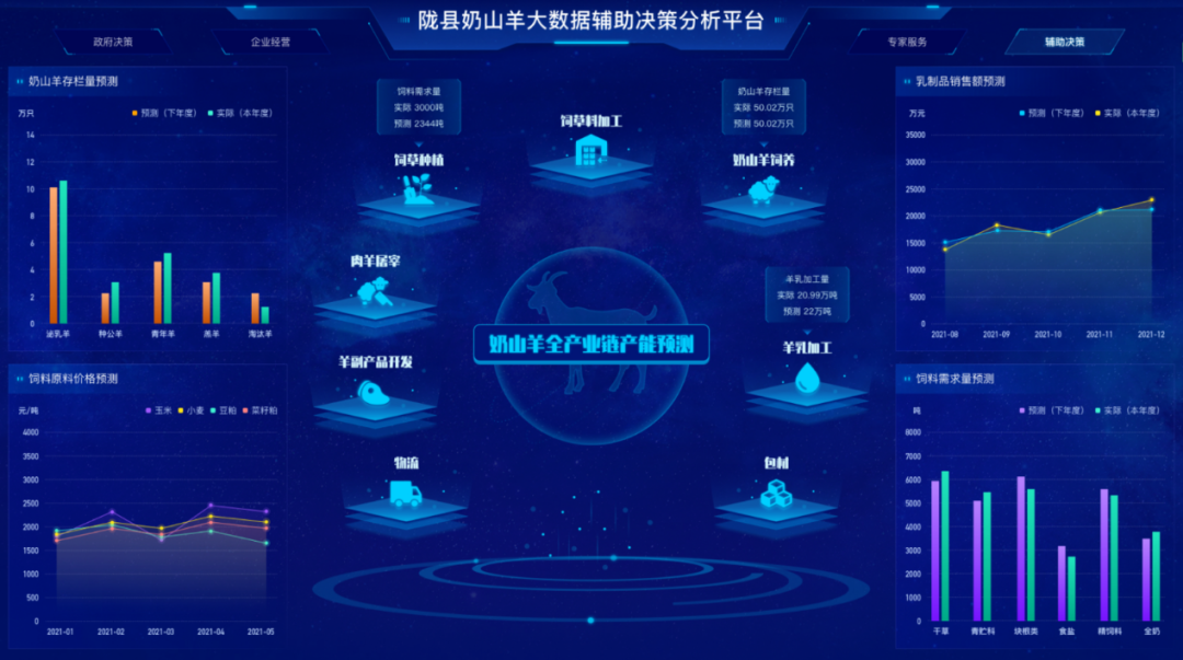 陇县奶山羊大数据服务平台上线运营以来,从政府管理上来看:帮助陇县摸清家底、掌控生产过程,提高对羊奶的质量安全监管,提高发现和处理问题食品的能力,防止重大安全事件的发生与蔓延,保护品牌,提高对奶山羊产业的管理服务能力及科学决策水平;从经营主体生产上来看:有效提高了养殖企业(户)的标准化养殖水平,使试点企业奶山羊的产奶量提高了15%左右,投入品降低了12%,有效提升了企业效益。