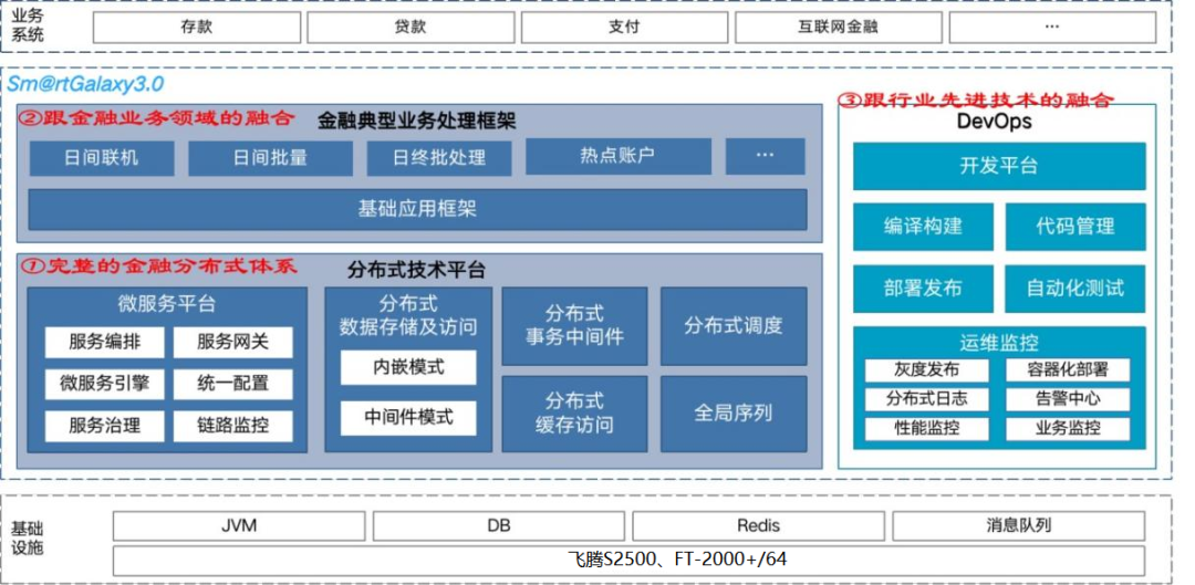 其中BB贝博艾弗森官网金融级分布式核心业务系统,以自主研发的分布式应用平台Sm@rtGalaxy为基础,基于SOA、分布式与微服务的架构规范,采用独立于中间件、数据库平台的开放式架构设计,全面实现与飞腾平台、操作系统、数据库等的开放性兼容。
