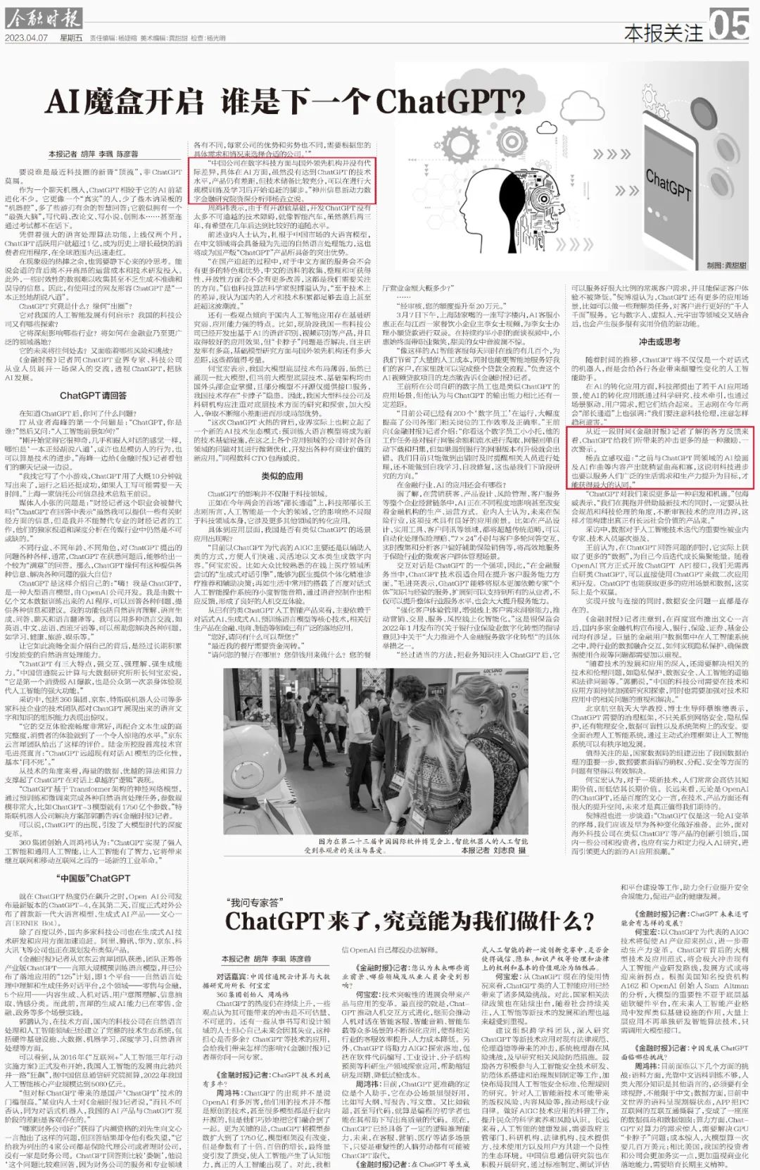 倪博溢也进一步谈道:“ChatGPT仅是这一轮AI变革的序幕,我们应该及早为各种变化做好准备。此外,面对海外科技公司在类似ChatGPT等产品的创新引领后,国内一些公司和投资者,也应有实力和定力投入AI研究,进而引领更大的新的AI应用浪潮。”
