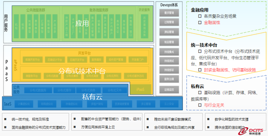 二是实现技术能力的内聚。在“无核化”理念下,进一步实现核心能力的剥离和重塑,最终将通用性技术能力内聚为全行级的统一技术平台,实现通用能力的复用,有效支撑上层业务创新和发挥底层云算力的释放。