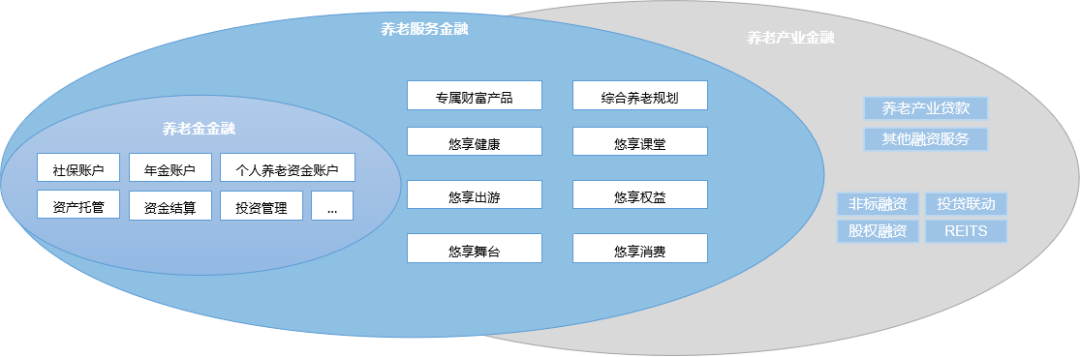 养老金融服务体系包含养老金金融、养老服务金融及养老产业金融。在需求层面,储蓄和投资是养老金融保障的基础需求;医疗、护理等是养老金融发展的进阶需求,高品质和差异化体验则是养老服务金融的高级需求;在供给层面,“医、药、养、护”等养老产业配套建设也必不可少。