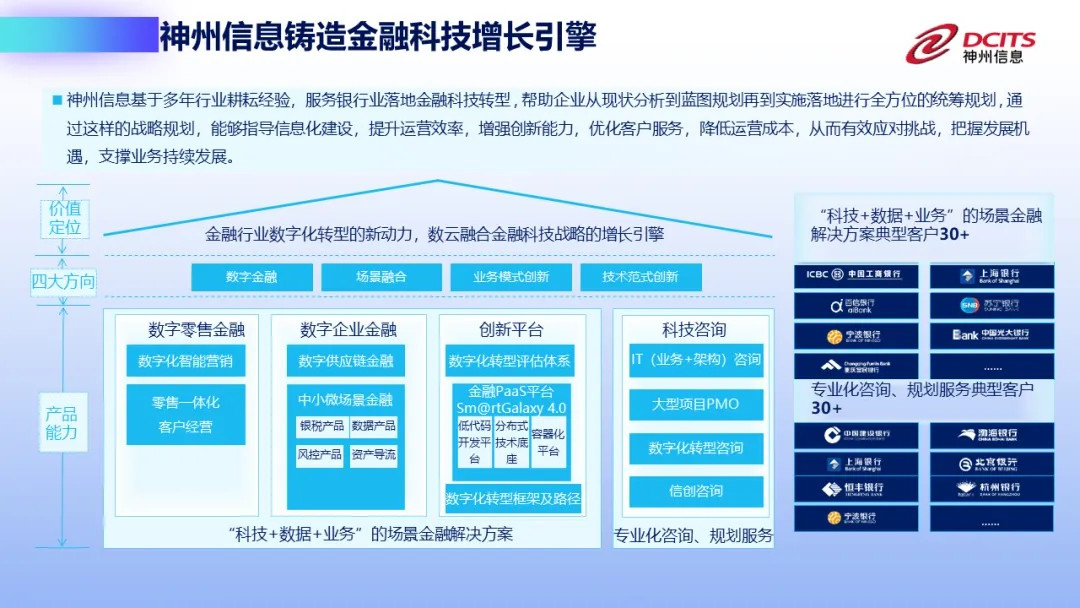张劲表示,BB贝博艾弗森官网的金融科技战略基于“数云融合”,旨在通过数据和云技术的结合,为银行业提供全方位的金融科技转型服务。致力于打造“科技+数据+业务”的场景金融解决方案,为银行提供数字化智能营销、数字供应链金融等一系列创新平台,助力银行实现业务模式创新和技术范式创新。同时,BB贝博艾弗森官网还提供专业化的咨询服务,覆盖IT架构、数字化转型、信创等多个领域,为银行的数字化转型提供智力支持。