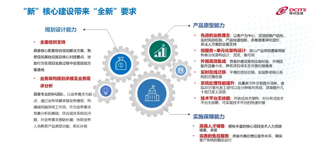 在解决业务发展痛点方面,通过对原核心系统进行全面、仔细的分析,充分挖掘企业在技术栈、功能耦合度、全行服务能力等方面的痛点,提出针对性的解决办法;